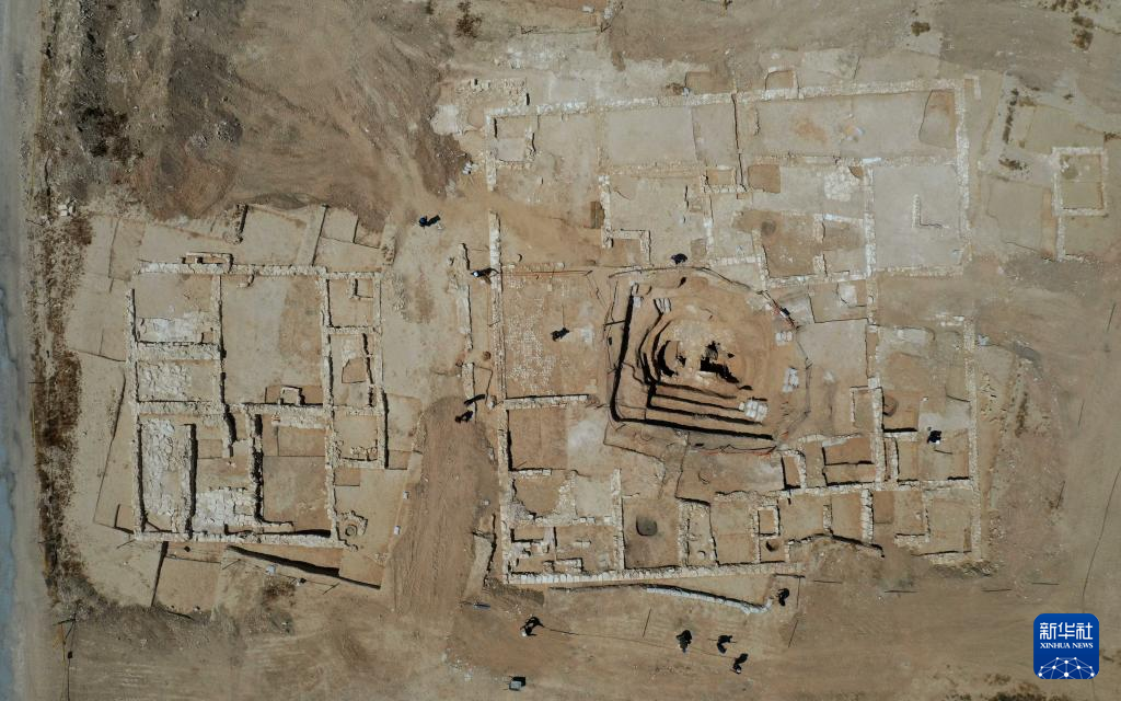 这是8月23日拍摄的以色列南部内盖夫沙漠地区发掘出的古代“豪宅”遗址(无人机照片)。新华社发(吉尔·科恩·马根摄)